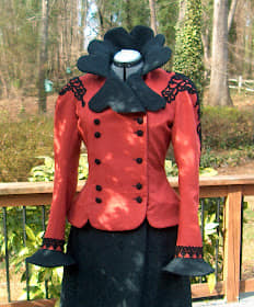The 1899 French Jacket is complete and ready to wear with the 1898 Walking Skirt. I love the style and color!