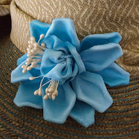 The ribbon flower Gardenia is a more complicated creation and one that I haven't taught before.  It is created with two different techniques - one for the five outer petals, and one for the five rolled inner petals.