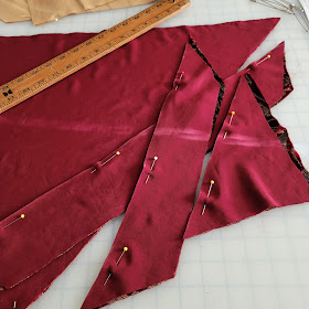 Time to sew those fabulous sleeves! The sleeve seam is sewn leaving 2" open at the lower edge. A French seam is used because of the sheer fabric.